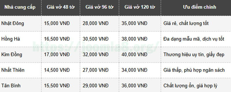 So sánh giá vở học sinh cấp 1 giữa các nhà cung cấp: Lựa chọn thông minh và tiết kiệm
